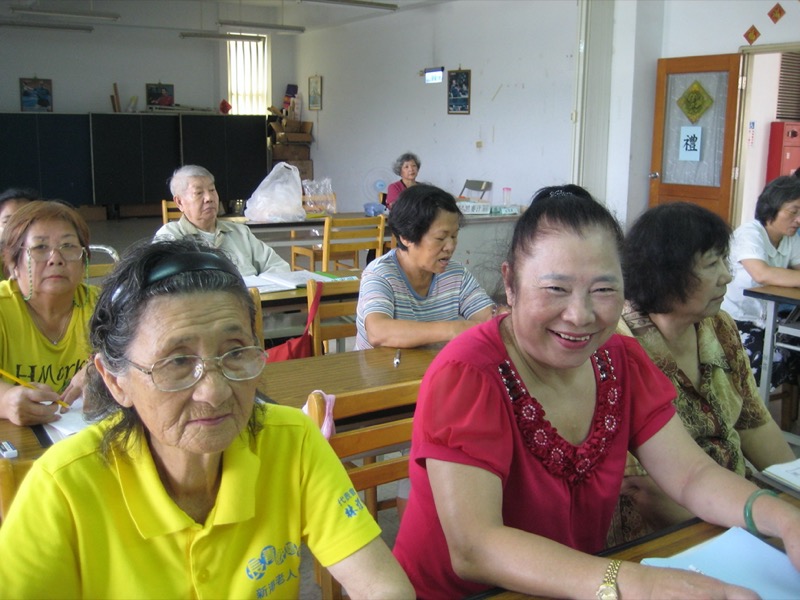 瞪大眼睛,認真上課,聽講的阿公阿嬤